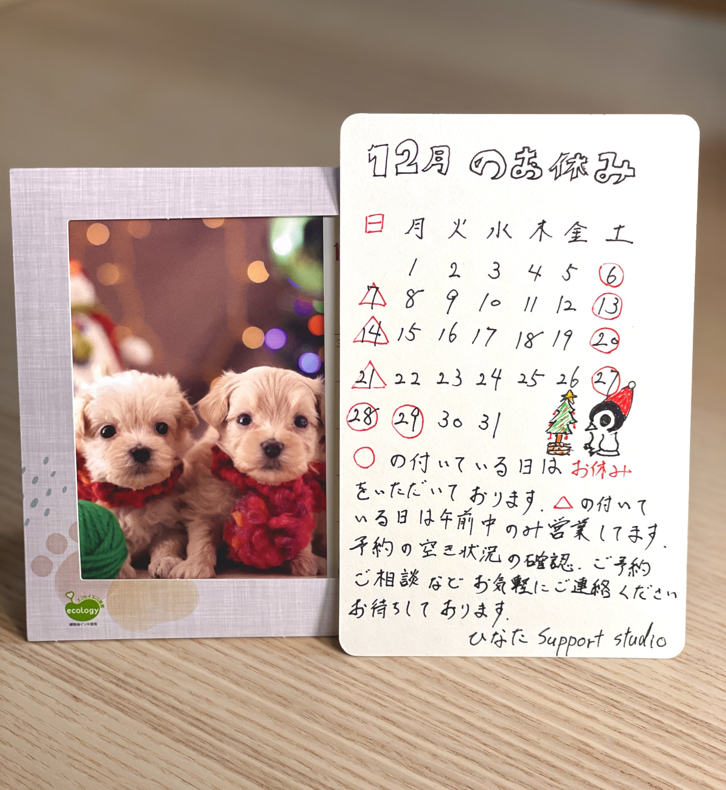 12月、師走ですね! 12月のお休みの予定です、ところどころお休みはいただきますが、年末31日まで営業しております。