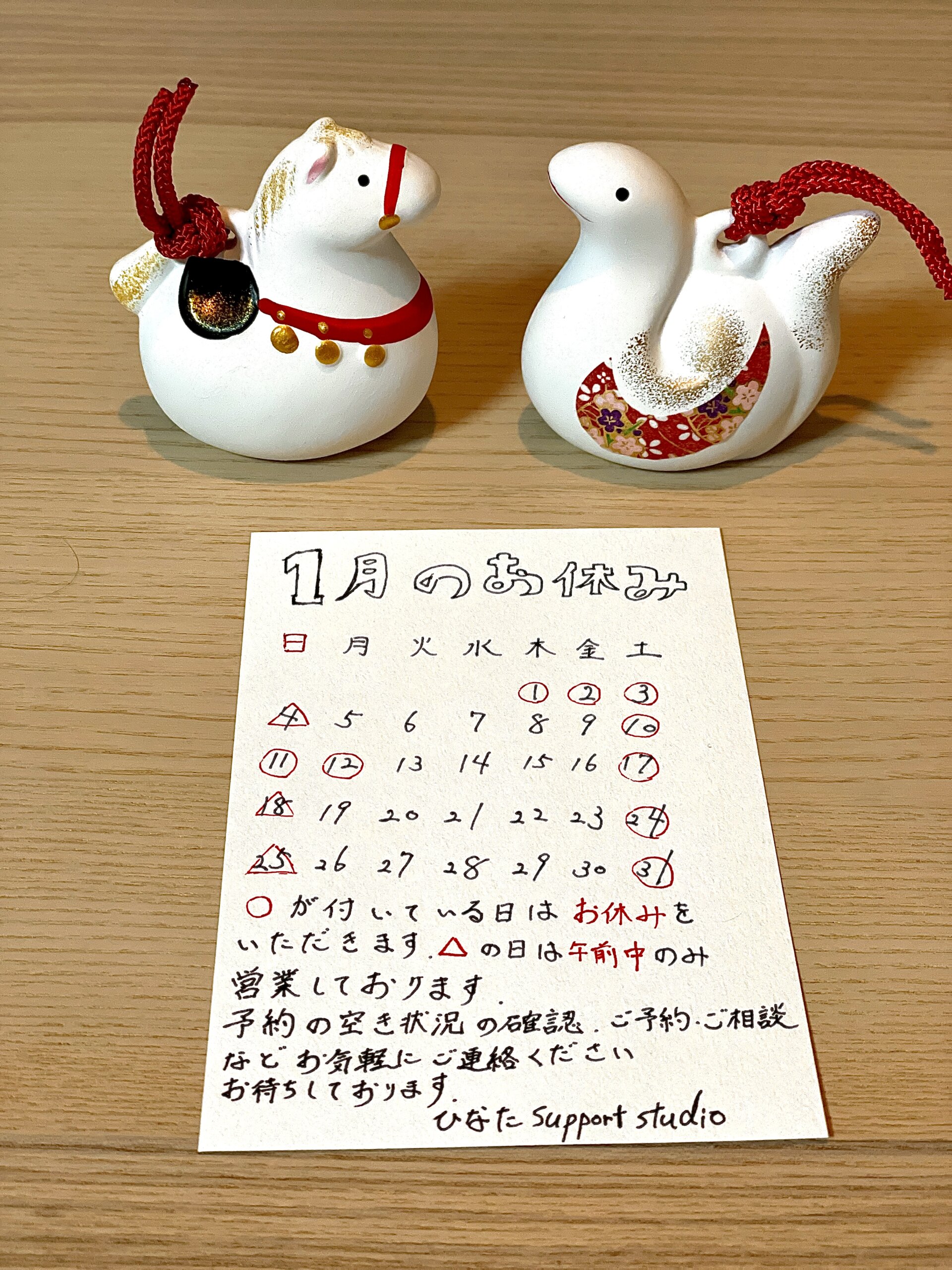 2026年1月の営業日のお知らせ
